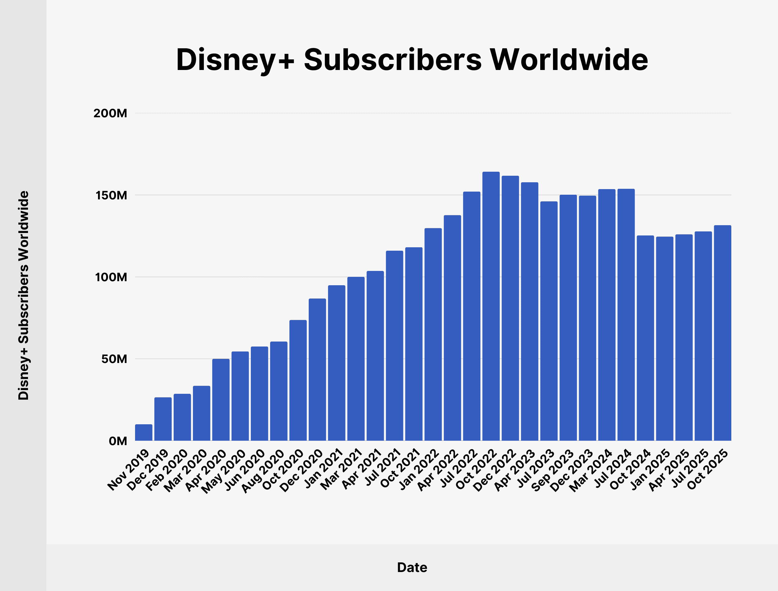 | Date | Disney+ Subscribers Worldwide |