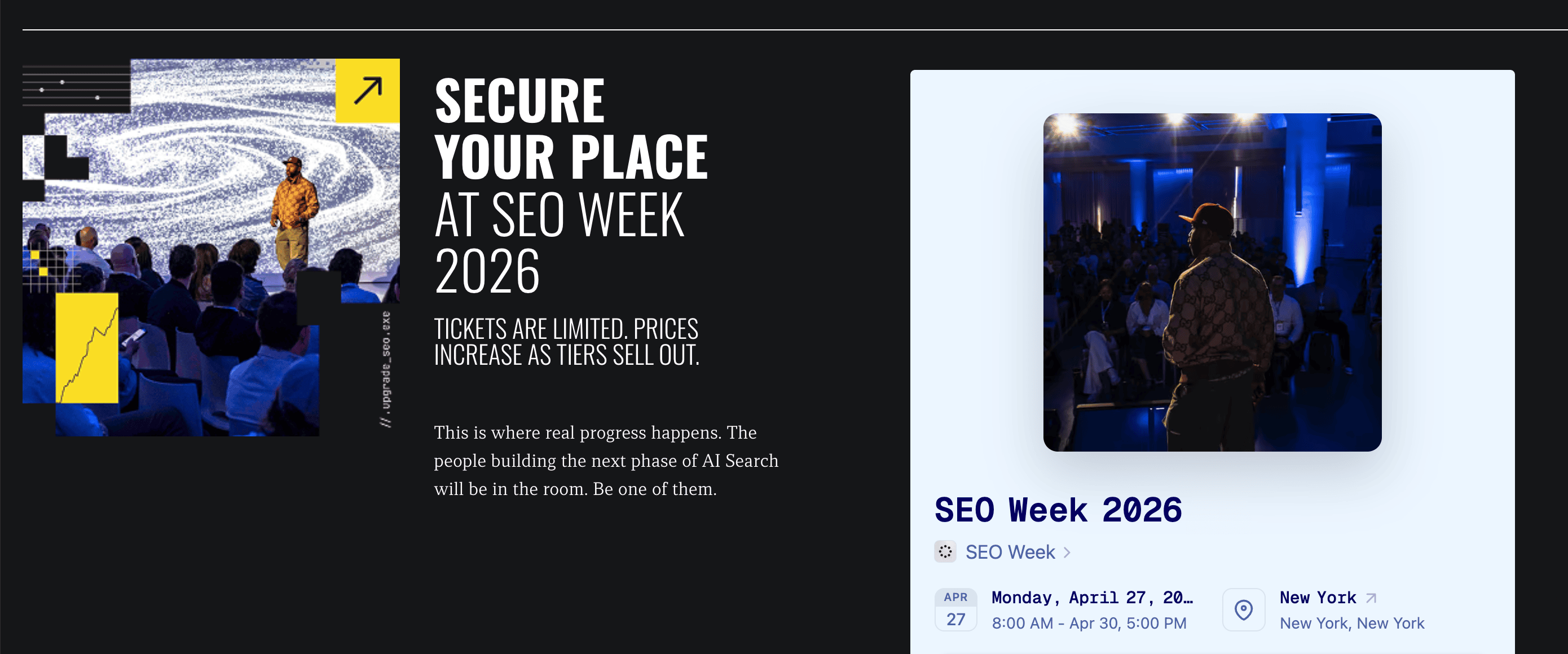 SEO Week is a four-day, single-track conference built around how AI search and SEO actually work together.